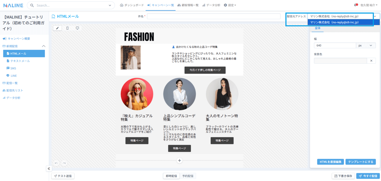 ドメイン登録後、メール送信元ドメインに追加されたドメインが表示されます。追加されたドメインをクリックしてください。